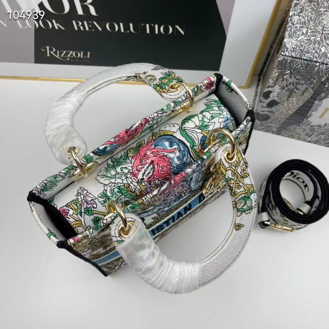 Featuring a wide. removable and reversible embroidered shoulder strap. the medium Lady D-Lite bag can be carried by hand or worn crossbody.