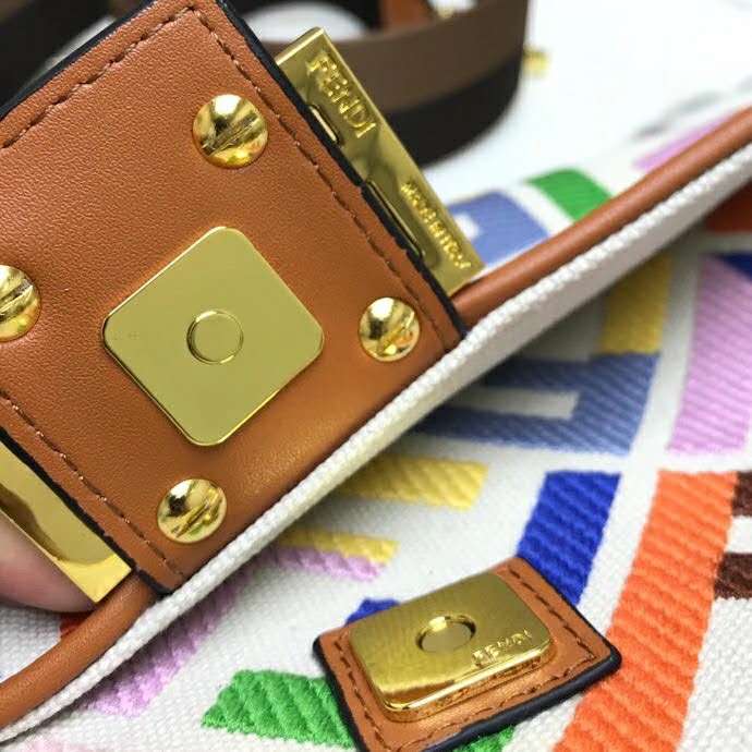 Iconic Baguette bag in medium size. with flap and FF fastening with magnetic clasp.